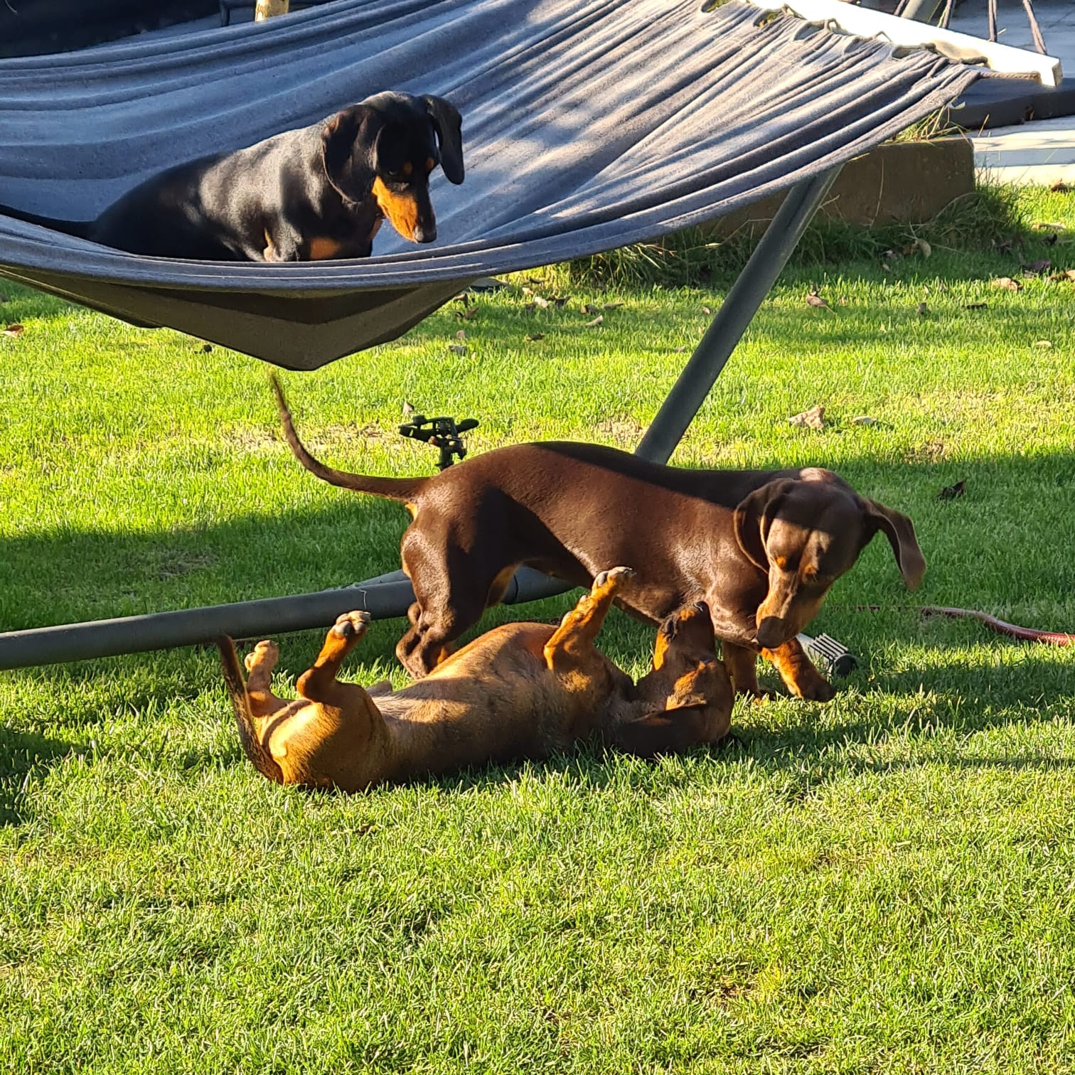 Onze Teddy is een zwarte dwergteckel, die we niet voor de fok gebruiken maar wel een vrolijke spil in ons gezin is.